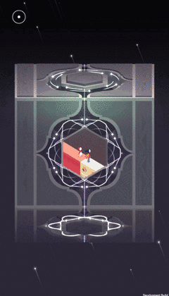 在最开始几关,通过回顾纪念碑谷1的一些基本交互设计慢慢进入到剧情中。随着情节推进,新的机制被引入,鼓励玩家靠自己去摸索这些机制是如何工作的。