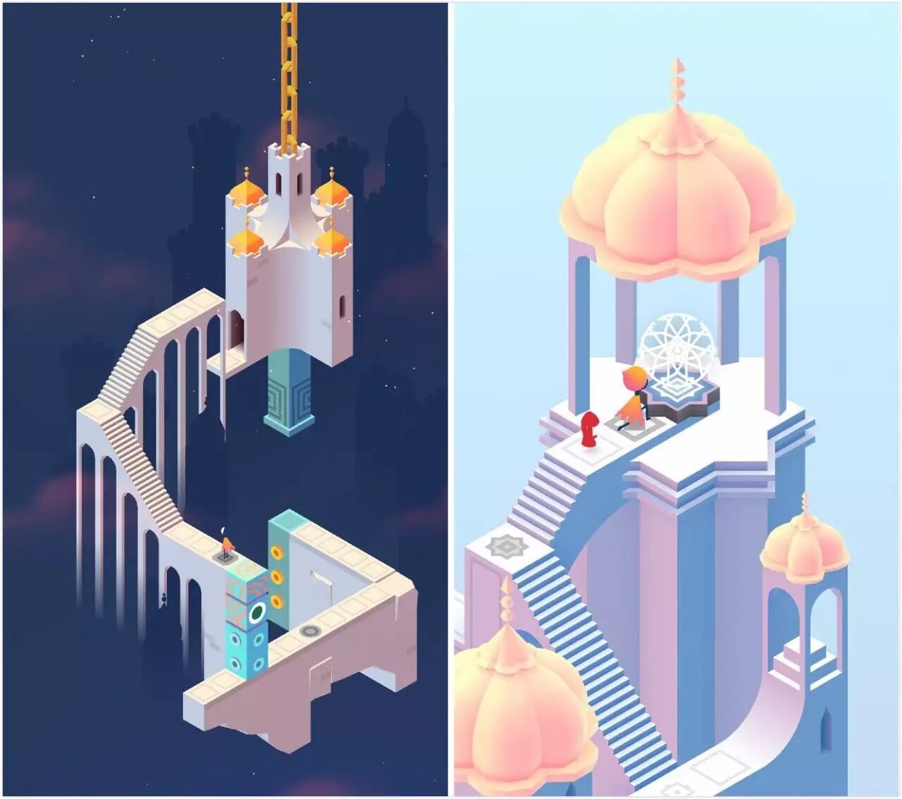 纪念碑谷2的设计在形式、功能、美学平衡上,都让人心驰神往。设计师创造出来这个矛盾的几何世界,不论是精妙的场景化设置,还是隐藏的人性化细节,都使我们相信,纪念碑谷2在继承原作风骨的基础上,达到了新的高度。