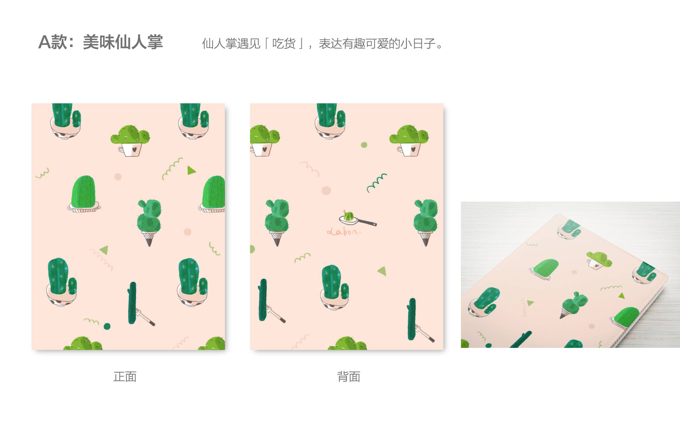 初稿提案 随后利邦从市场角度,很快给出初稿的反馈建议。双方根据参考图再次有针对性地沟通了设计方向,进行部分修改和重新设计。Ran认为需求方每一次的主动沟通对他的设计带来了许多新的灵感,更能找到正确的设计定位。 最终交付的设计成果,「美味仙人掌」、「小花匠」和「奇异房间」三个系列插画记事本。