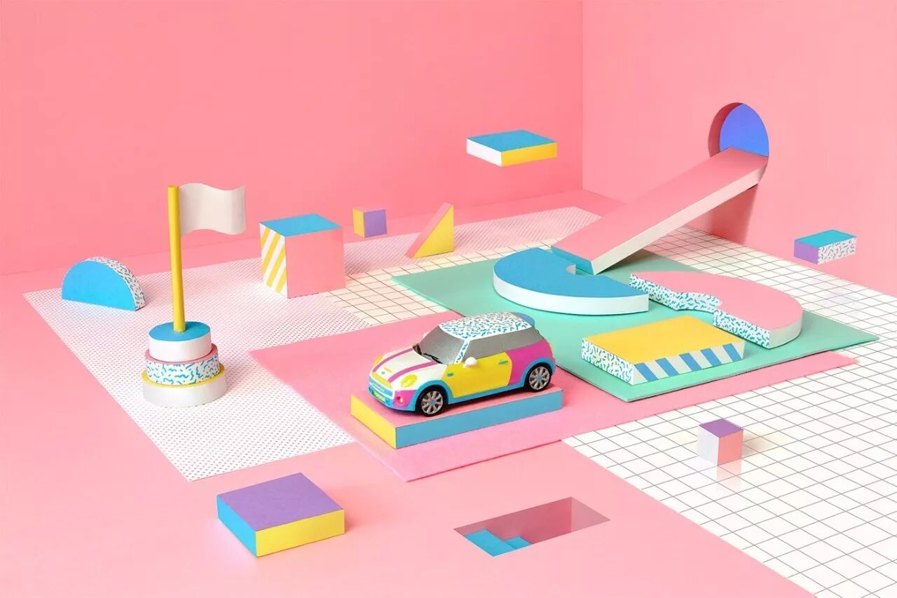 孟菲斯风格在色彩上常常喜欢运用一些轻快明亮、鲜艳活泼的色调。尤其是粉红、粉绿这些看似有些俗气的色彩,绝对不走低调的路线!