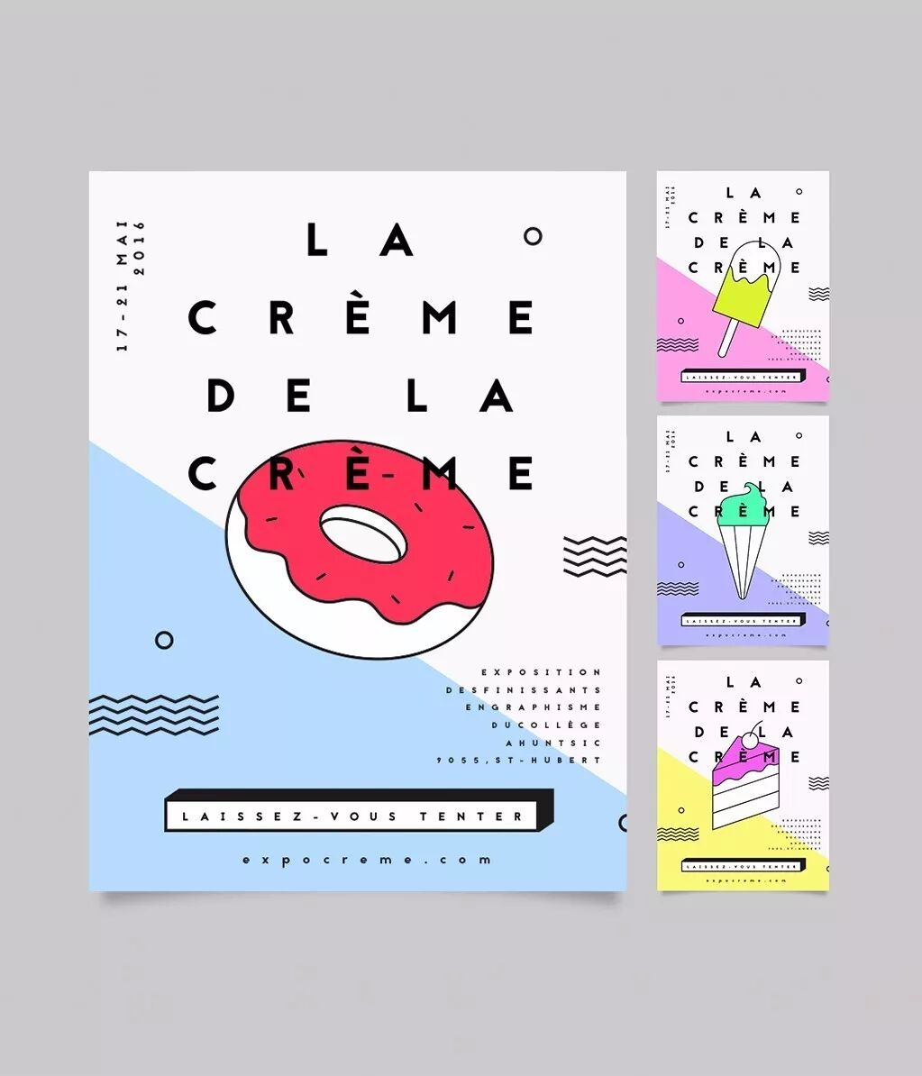 这种风格常常故意打破配色规律,明亮鲜艳丰富的色彩组合,构图上运用大量的几何线条图案。视觉效果超棒,一下子就在各种地铁广告中博得广泛关注。