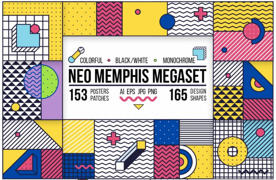 学过配色的都知道,设计一件东西最好不要超过三种颜色,孟菲斯风格直接打破这种常规的配色规律,设计出来的作品竟然意外地好看。