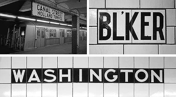 上世纪三十年代交通表示字体混乱时期,纽约地铁站