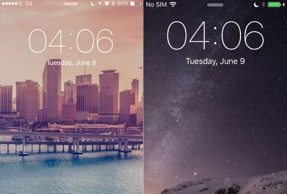 锁屏界面对比,左为Helvetica,右为San Francisco字体