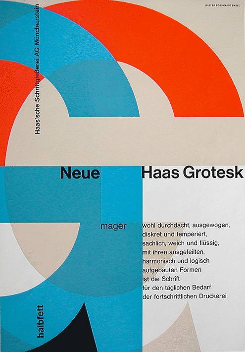 1955年,瑞士哈斯铸字厂的主理人爱德怀德.霍夫曼眼瞅着自己公司的字体越来越没市场,再这样下去关门了咋办,决心设计一款和Akzidenz Grotesk相抗衡的无衬线字体。