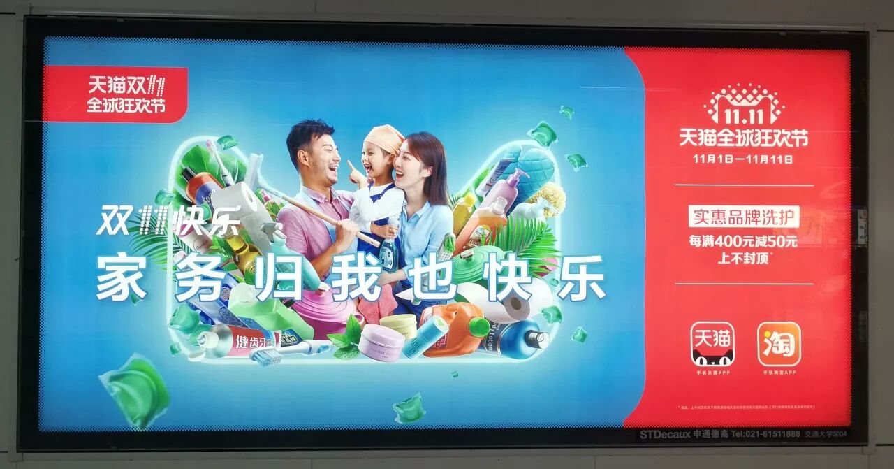 我们可能在地铁、公交站台、电梯、商场过道…看到双十一广告,只有短短几秒钟的时间来抓住我们的注意力,宣传文案必须简洁有力。