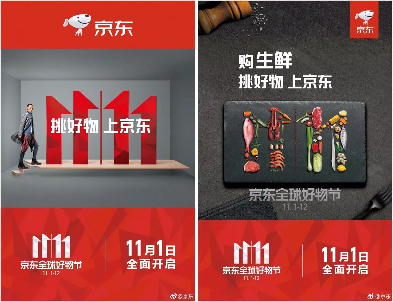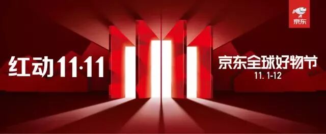 红色已经成为京东的符号认知,运用在双十一海报中满眼的红色元素,却能在第一眼识别“11.11”,不会造成视觉疲劳。