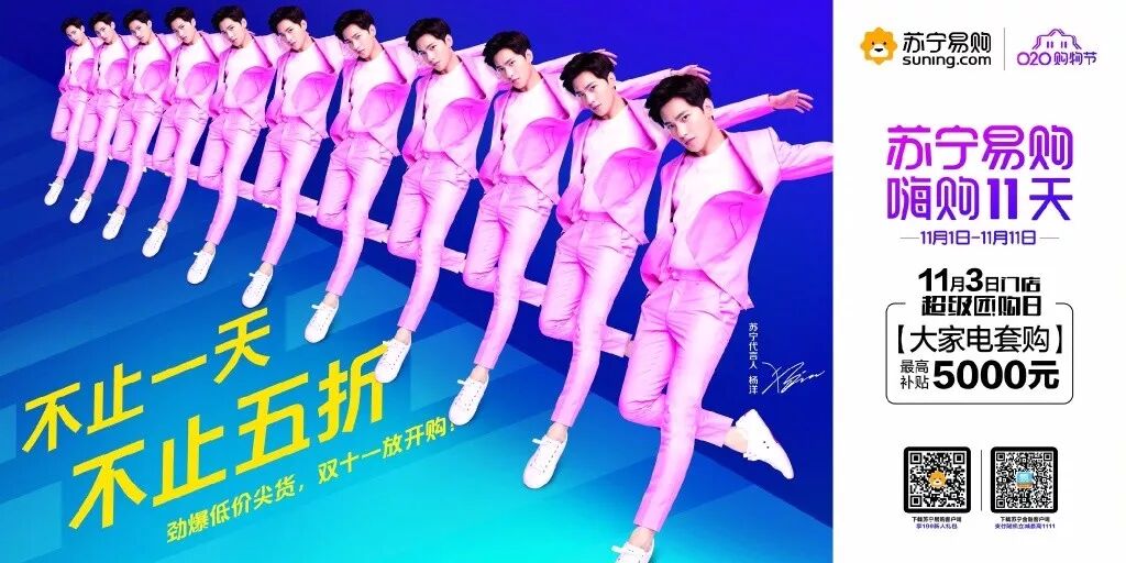 数了一下有11个杨洋,这么粉蓝的配色、简单粗暴的抠图粘贴,粉丝可能都想手撕苏宁的审美了。虽然你成功吸引了我的注意力,但是真的宁愿去隔壁家买😂